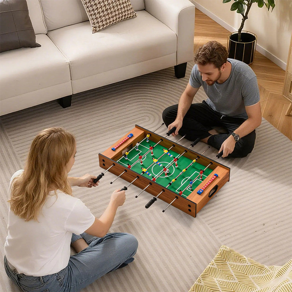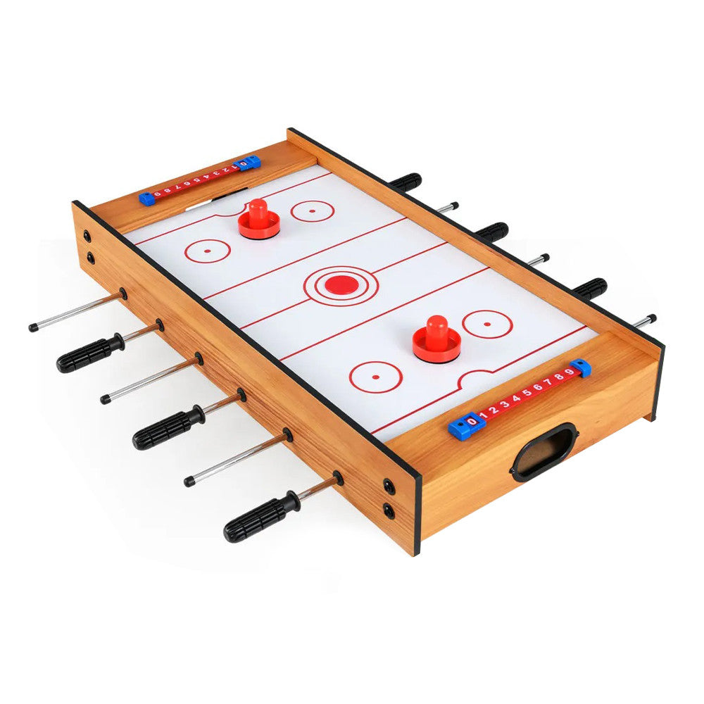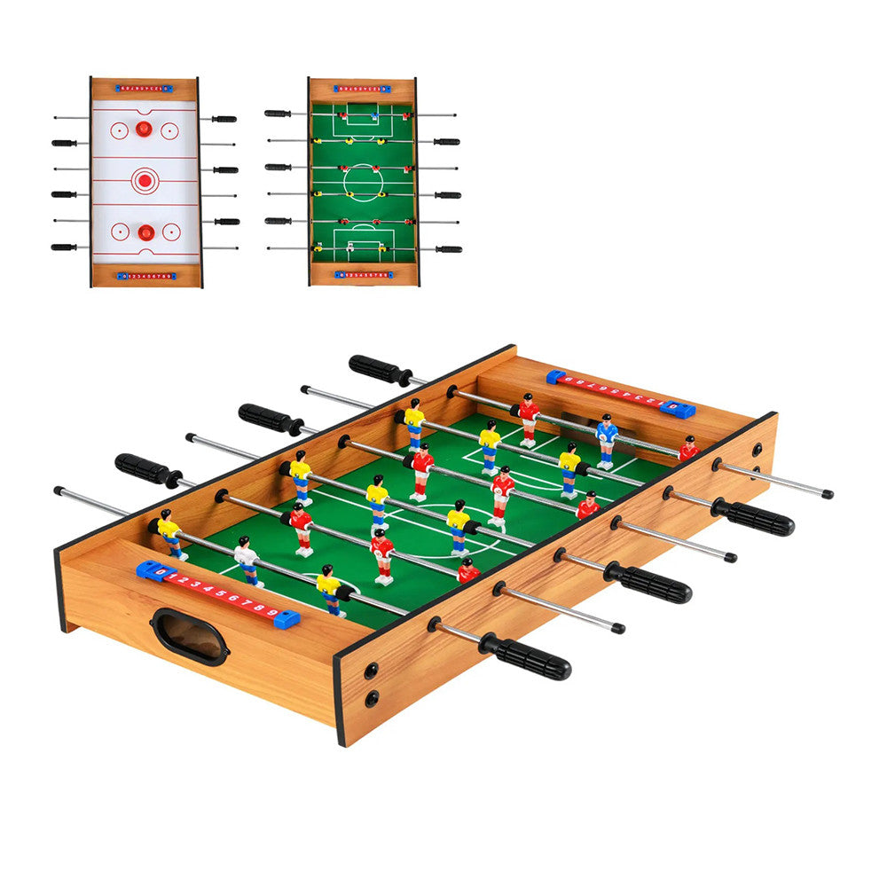 A 2 az 1-ben multifunkciós játékasztal asztali foci és léghoki játékkal kínál szórakozást az egész családnak. Könnyen forgatható, így pillanatok alatt válthatsz a két játék között. A masszív, környezetbarát anyagból készült szerkezet stabil, a csúszásmentes markolatok pedig kényelmes fogást biztosítanak. Ideális választás gyerekszobába, nappaliba vagy családi összejövetelekre.