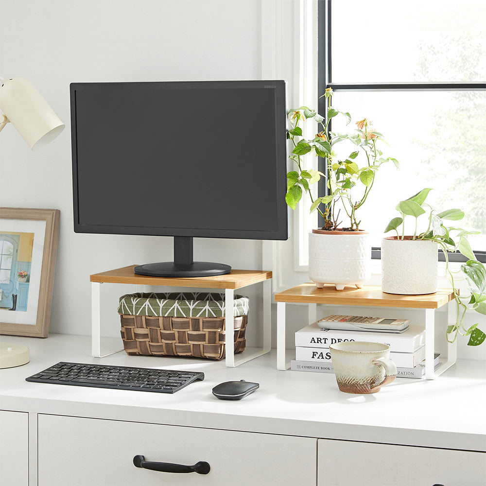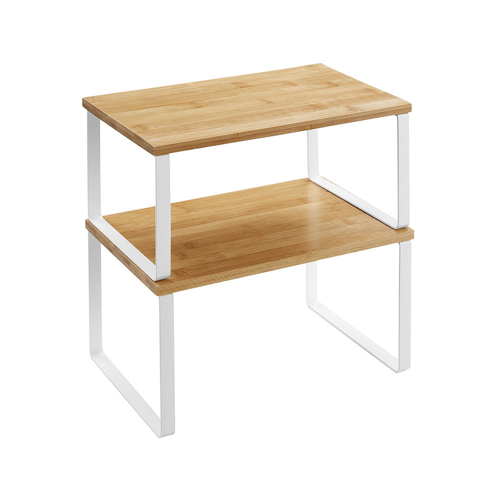 Egyszerre funkcionális és dekoratív – ez a bambusz és fém polcszett remekül mutat a konyhapulton, a kamrában vagy akár az íróasztalon. Minimalista stílusa minden enteriőrbe illik.