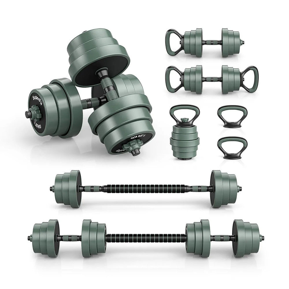 A multifunkciós szett lehetővé teszi, hogy egyetlen csomaggal többféle gyakorlatot végezz. Használhatod kézi súlyzóként, összekapcsolva rúdsúlyként, átalakítva kettlebellként vagy fekvőtámasz állványként – így változatos és hatékony edzésprogramot alakíthatsz ki.