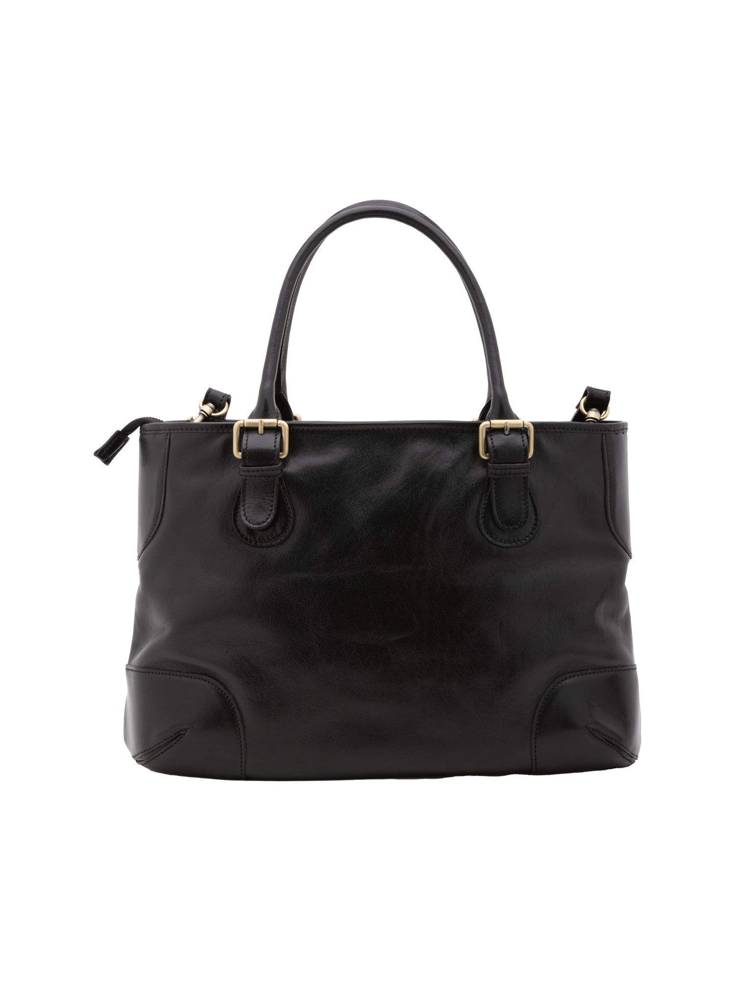 Borsa a tracolla da donna. La chiusura è con zip. Le tasche interne sono due con zip. Le tasche esterne sono assenti. La tracolla è rimovibile in pelle. Il manico è in pelle. Gli scomparti interni sono due. Il materiale esterno è vera pelle vacchetta. Internamente è foderato in cotone. Misure: 28x43x16 cm . Made in Italy