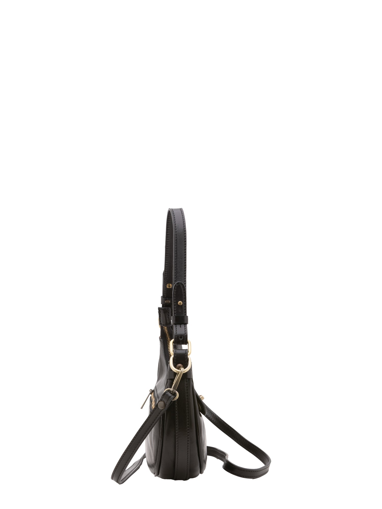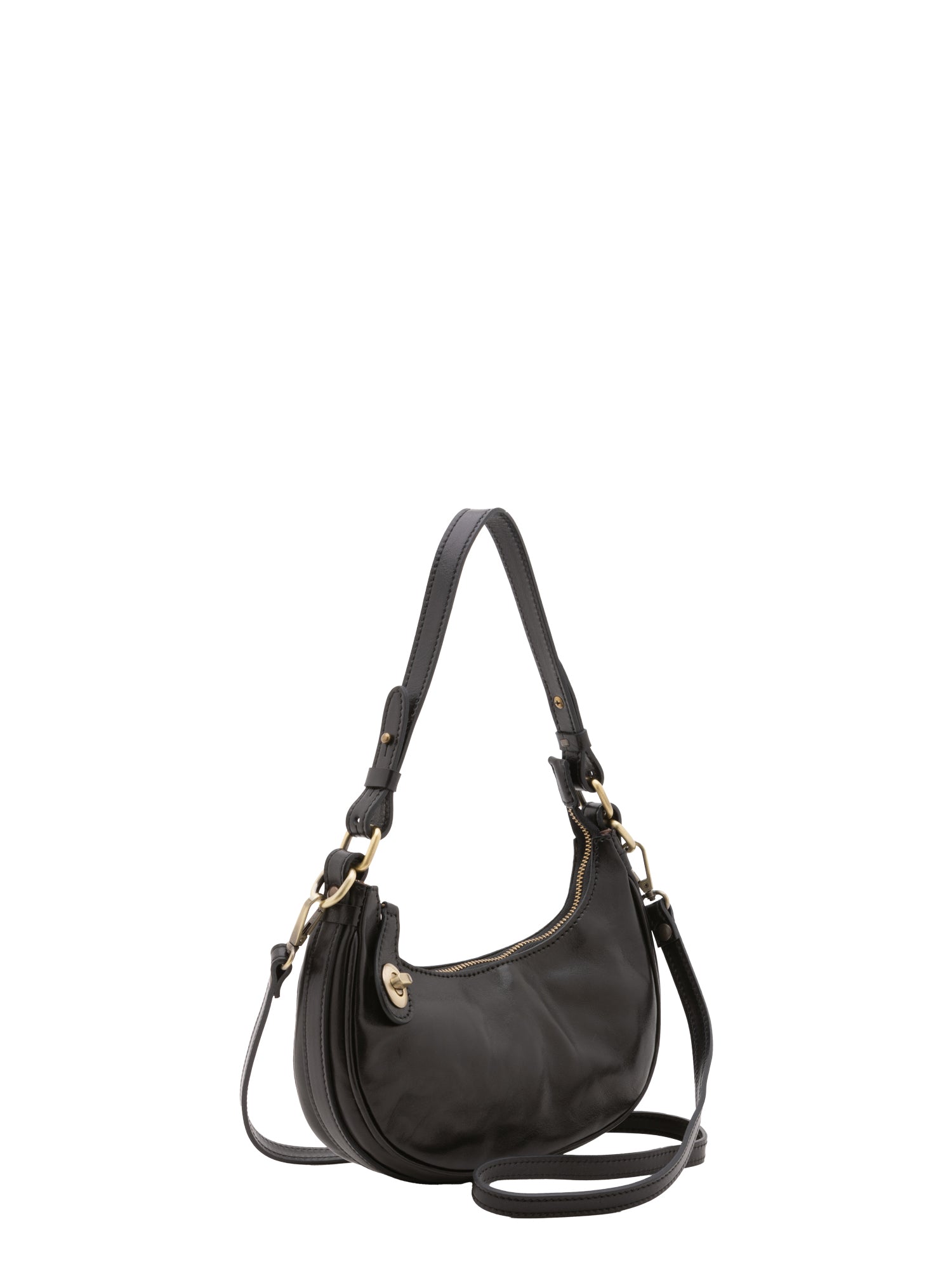 Borsa a spalla da donna. La chiusura è con zip. Le tasche interne sono una con zip. Le tasche esterne sono una posteriore con zip. La tracolla è rimovibile in pelle. Il manico è in pelle. Gli scomparti interni sono uno. Il materiale esterno è vera pelle vacchetta. Internamente è foderato in cotone. Misure: 25x18x8 cm . Made in Italy