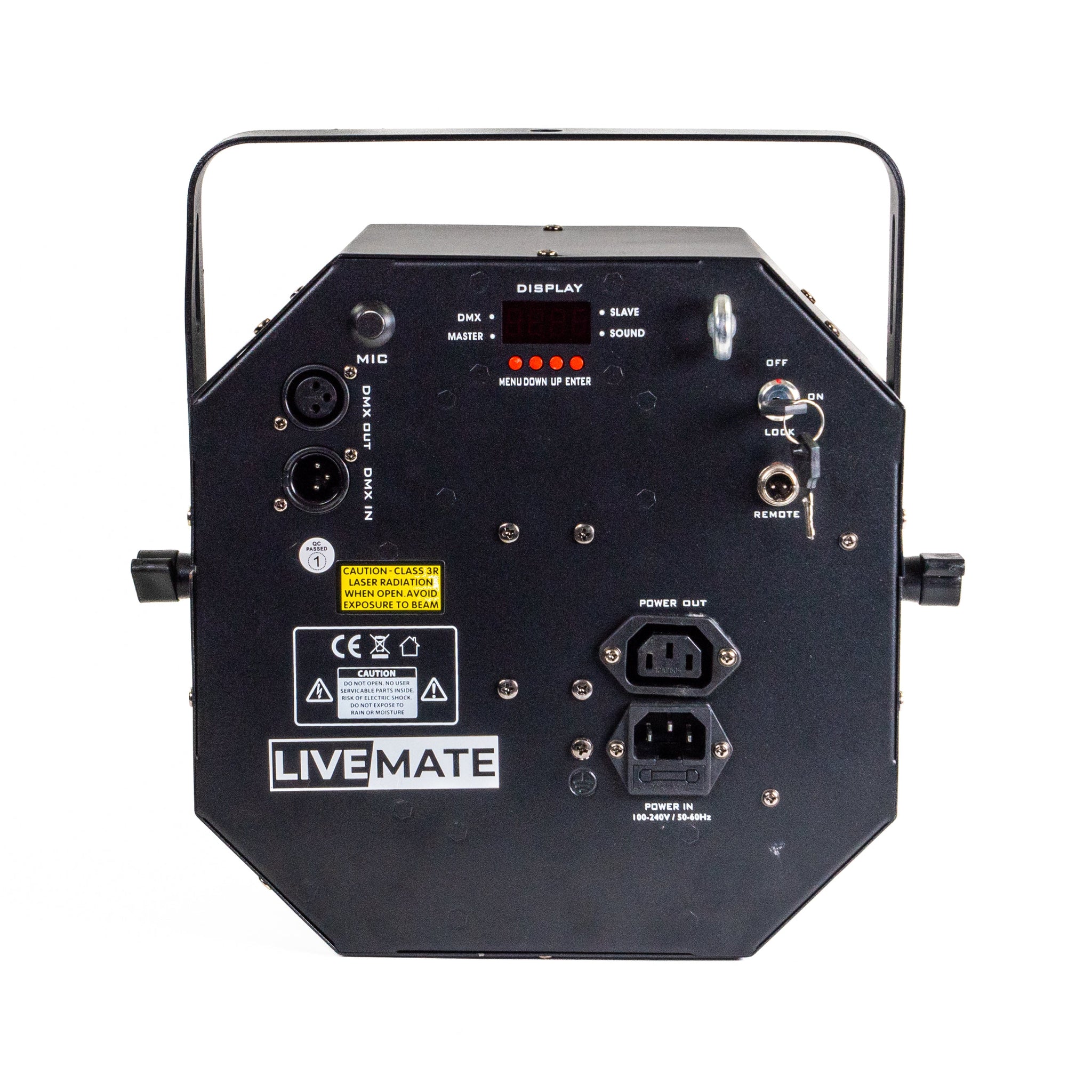 Create a cool lighting experience with LiveMate's LED Multi FX, combining laser, strobe, and LED effects in one unit