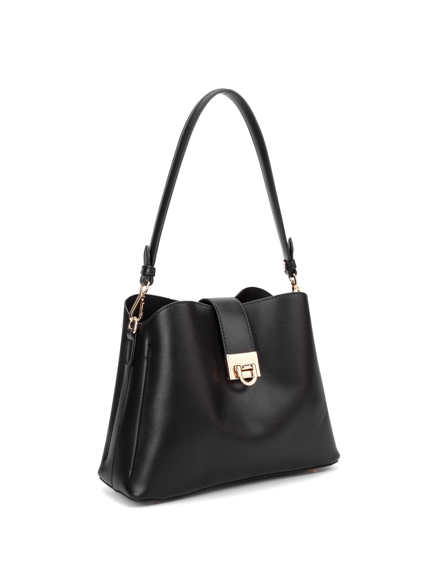 Borsa a spalla da donna. La chiusura è con girello. Le tasche interne sono una con zip e una aperta. Le tasche esterne sono assenti. La tracolla è regolabile e rimovibile. Il manico è In PU. Gli scomparti interni sono tre. Il materiale esterno è Vegan Leather/Pu. Internamente è sfoderato. Misure: 29x22x10,5 cm . Prodotto Fashion