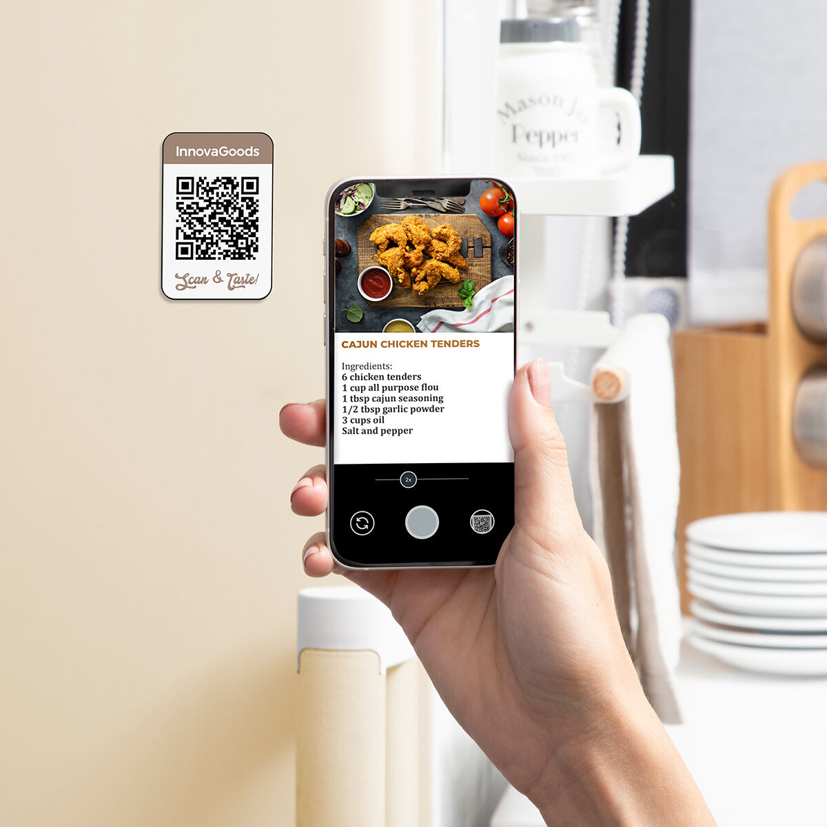 Easy to use: Turn the dial and fry, roast, toast, bake, dehydrate, defrost, reheat and grill. Choose the cooking. Choose the cooking time and temperature, cook with 95% less fat to obtain exquisite and healthy food with up to 80% fewer calories. Includes a QR magnet with online recipe book containing more than 100 recipes in different languages.