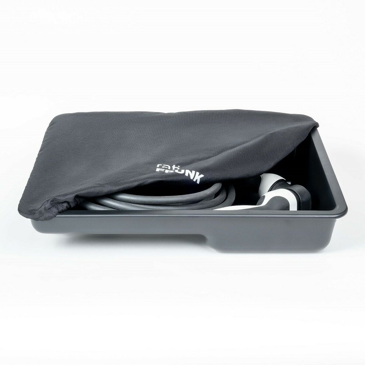 The Armster central armrest for the FIAT 500e 2020 is an accessory specifically designed to provide a practical and functional solution for organizing the electric vehicle’s space. Featuring a black color design, this armrest includes a storage compartment known as the FRUNK, which utilizes the unused space under the front hood to maximize the car’s cargo capacity without interfering with the trunk. Its airtight compartment has a 13-liter capacity and dimensions of 44 x 31 x 6/13 cm, allowing you to comfortably store charging cables, vehicle accessories, and other daily essentials, keeping them clean and protected thanks to an elastic cover that shields the contents. Installation is quick and easy, designed so any owner can fit it without special tools, supported by a mounting kit and clear installation guide. Additionally, it includes rubber insulating spacers that ensure a secure and firm fit, keeping the armrest at a safe distance from the vehicle’s electrical system. This product is manufactured by Rati, a company with experience since 1986 in developing and supplying original car accessories, ensuring compatibility and quality finish. In short, this central armrest not only adds comfort and ergonomics while driving but also optimizes space usage, offering a smart and tailored solution for the FIAT 500e 2020.