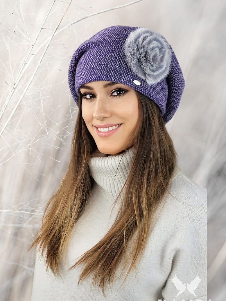 The SASANKA pepita beret with a rabbit fur decoration in purple is the perfect addition to the autumn and winter wardrobe. The beret in a classic shape is decorated with a pepita pattern, giving it a unique character. Made of high-quality yarn with a high wool content, it provides warmth and comfort when worn. An additional eye-catching element is the decoration made of natural rabbit fur, matching the color of the beret. The product is available in several interesting color variants, so everyone can find the right one for themselves. The SASANKA pepita beret is an elegant and stylish choice for cold days.