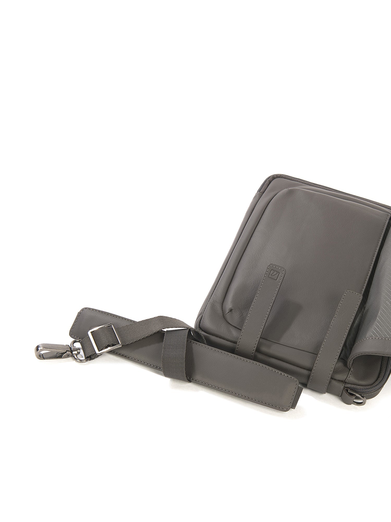 Borsa a tracolla unisex. La chiusura è con zip. Le tasche interne sono due aperte. Le tasche esterne sono assenti. La tracolla è regolabile e rimovibile in pelle . Il manico è assente. Gli scomparti interni sono uno. Il materiale esterno è 100% Vera Pelle. Internamente è poliestere. Misure: 27x22x5,5 cm . Prodotto Fashion