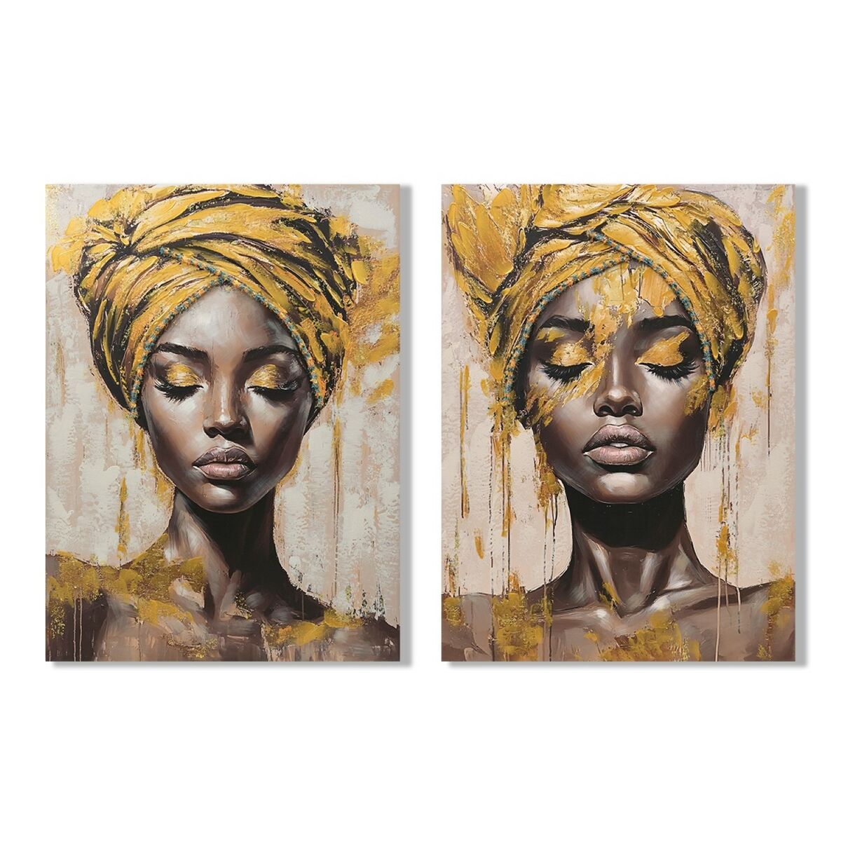 Canvas Home ESPRIT Brown Golden Colonial African Woman 90 x 3 x 120 cm (2 Units)!