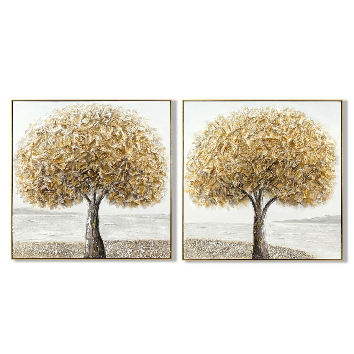 Canvas Home ESPRIT Grey Golden Tree Traditional 102 x 4,5 x 102 cm (2 Units)!