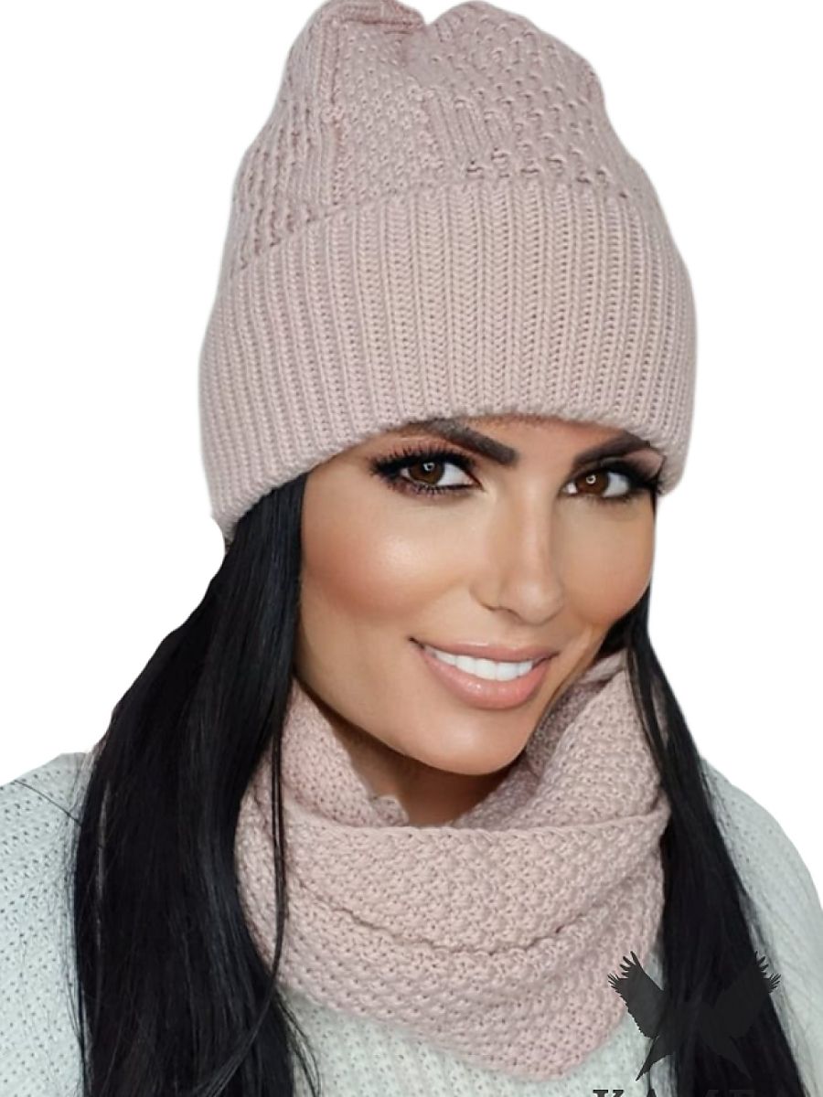 The women's SAFONA hat in pink is a fantastic proposal for the autumn-winter season. The product is characterized by beautiful shapes and intricate, thick knits. The hat has a characteristic, wide brim over the forehead, which adds charm. The uniform color emphasizes fantastic patterns that look beautiful on the hat.