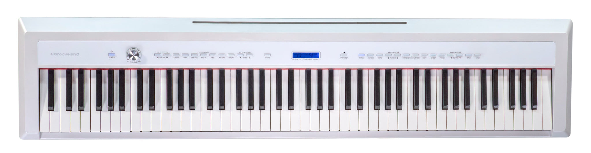 The Grooveland P22 Electric Piano (White) is the perfect choice for anyone looking for a digital piano with professional sound, many features, and elegant design – complete with stand and pedals, ready to play right away.