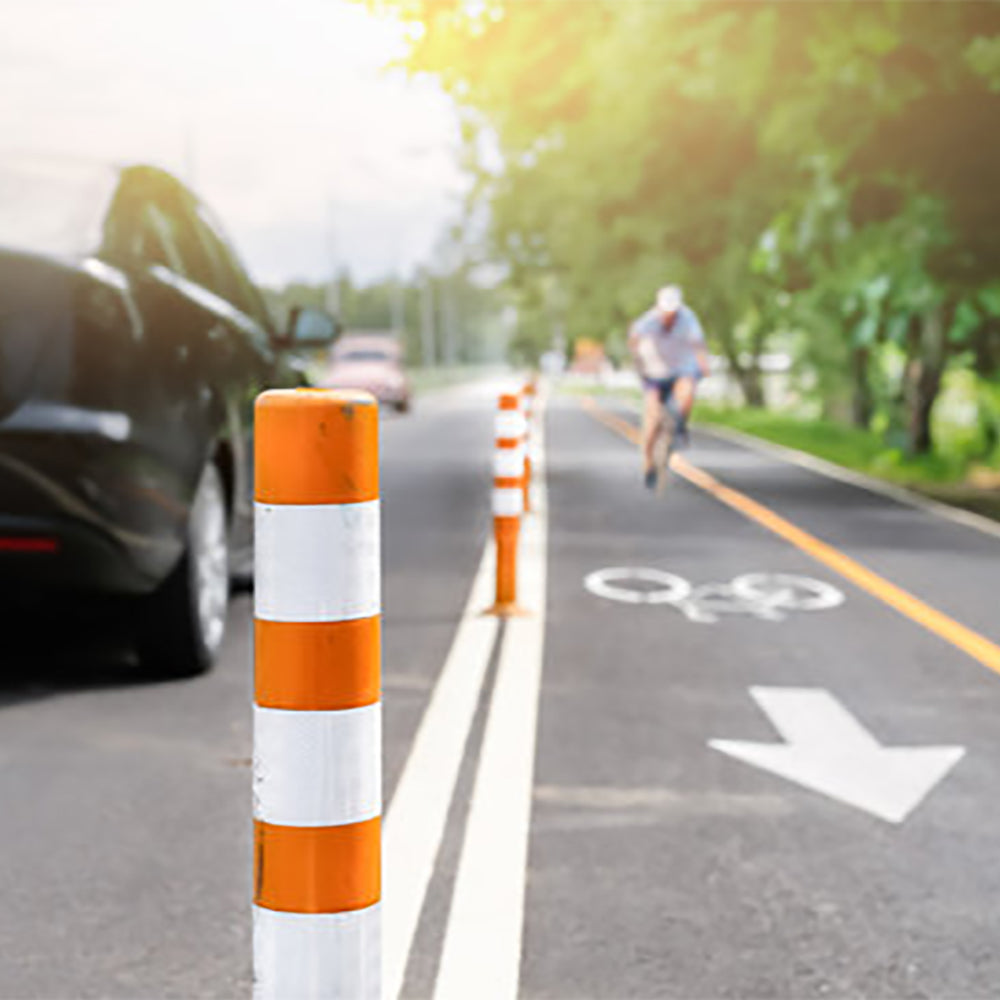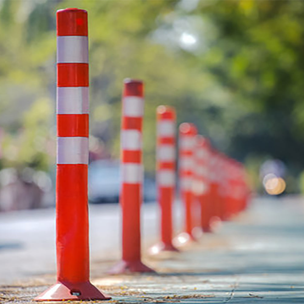 Műanyag terelőoszlop 5 db, 1 oszlopon 3 db fényvisszaverő csík, tartós műanyag, figyelem felkeltő narancssárga szín, stabilan a földhöz rögzíthető, 5x3 db rögzítőcsavar.-Alinda.hu