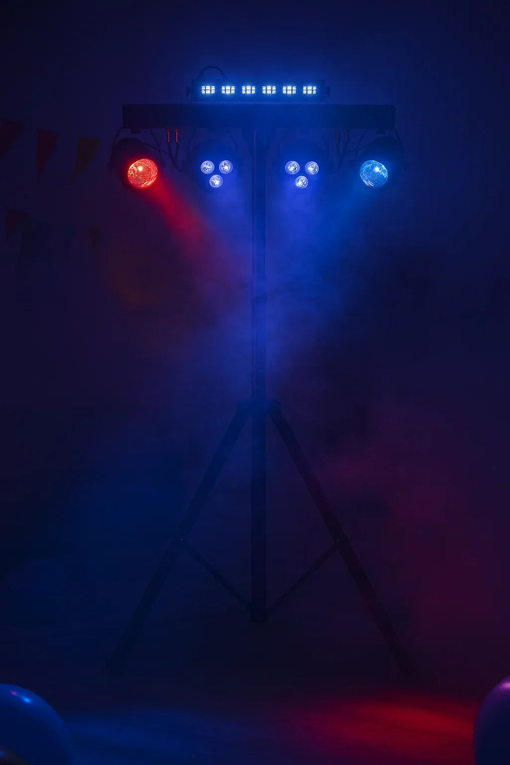 - LED PAR: 2 lamps with 3 x 4W RGBW LEDs – provides bright colors, color changes, and wash effects