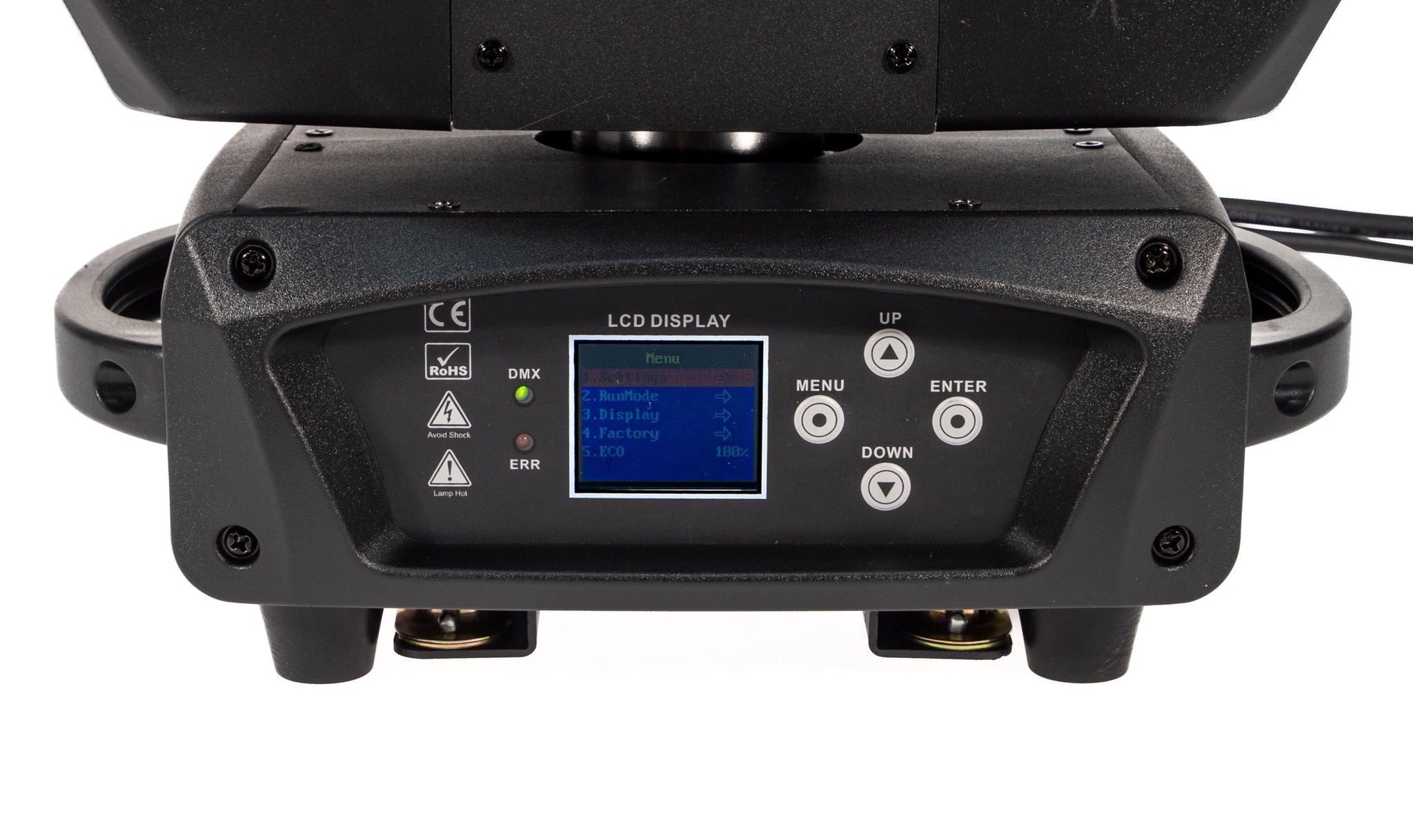 The Mira 200PRO is packed with built-in effects, including 3 LED ring control, rainbow effects, and color macros, making it a powerful tool for both lighting designers and performers. The operation is easy via an LCD color display, and with a weight of only 8.5 kg, it is both easy to transport and robust enough for professional use.