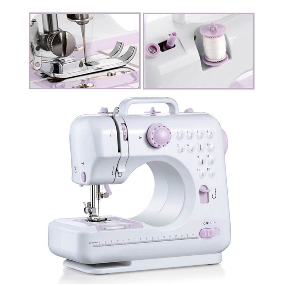 Mini sewing machine with accessories, compact and portable, suitable for beginners, easy to use, 12 different stitch patterns.