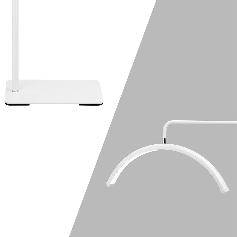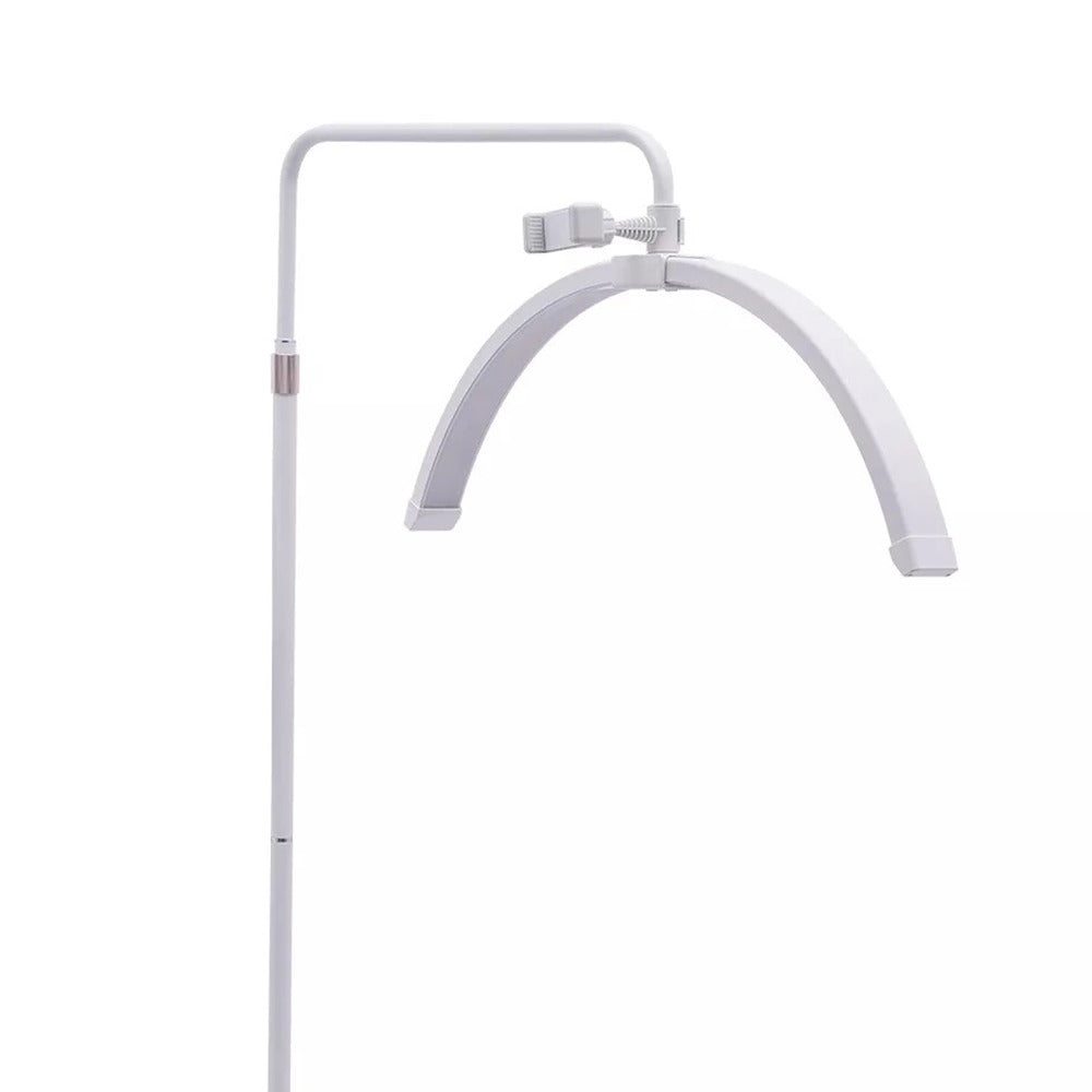 Félhold alakú LED állólámpa kozmetikai kezelésekhez. Erős fényerő, állítható színhőmérséklet, stabil fémvázas kialakítás professzionális felhasználásra.