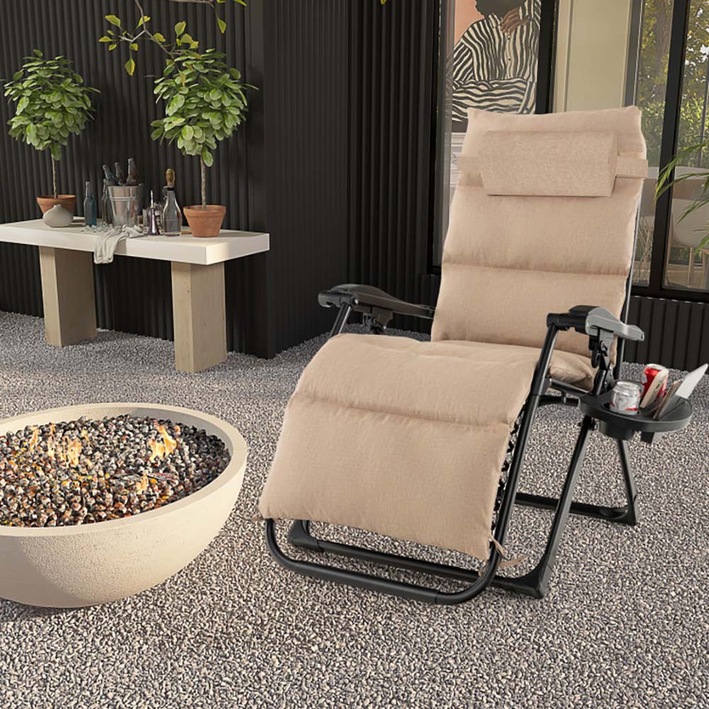 Párnázott gravitációs szék pohártartókkal és fejtámlával kültérre az Alindától.-Alinda.hu