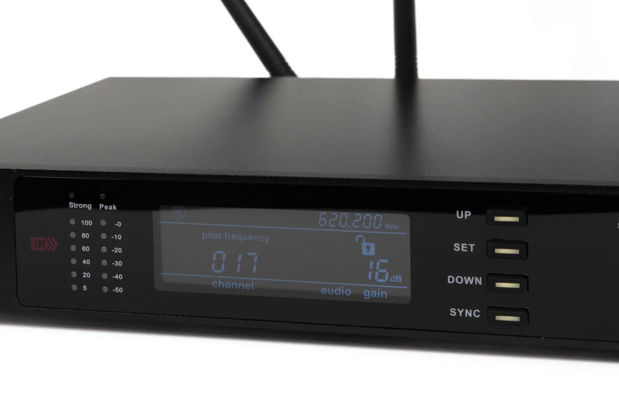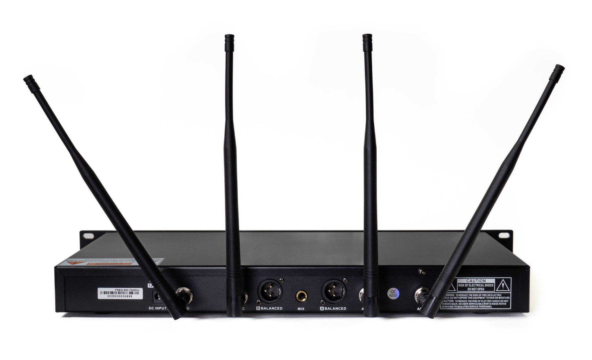 Professional UHF wireless microphone with 200 selectable UHF frequencies, 4 antennas, SMT circuit diversity, IR frequency scanning, and a maximum range of up to 200 meters – ideal for stage shows and performances.