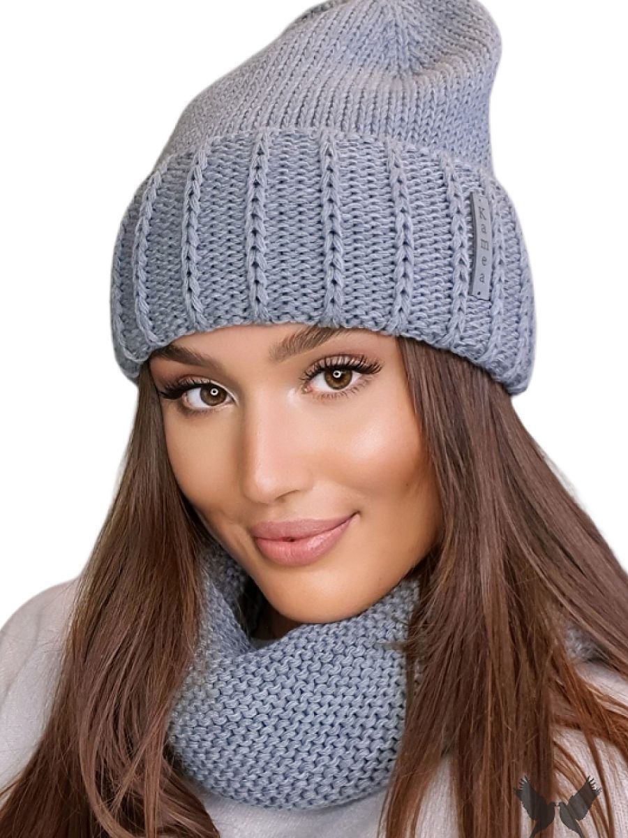 The Leona women's set consists of a gray hat with a chimney. Simple elegance and charm are the features that characterize products from the Leona brand. The hat has a characteristic, wide cuff over the forehead, and a uniform color emphasizes the charm and versatility of the set. The soft material is warm and comfortable to use. The set easily matches any styling, ideal for autumn and winter. Available in several color variants. Kamea brand products guarantee the highest quality.