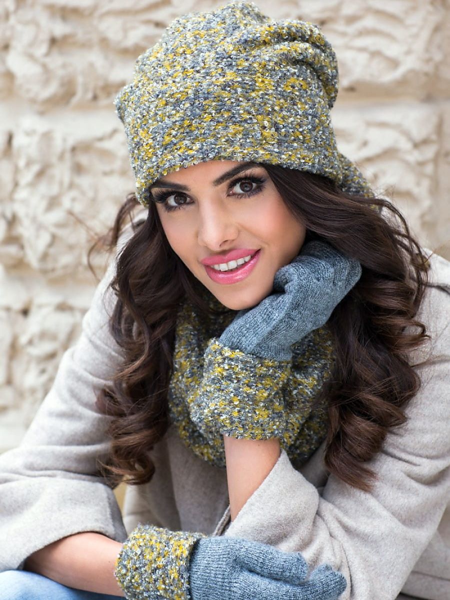 The Lidia women's set in mustard color is a perfect choice for cooler days. It consists of a hat and a scarf, which complement each other perfectly. Both products are made of high-quality yarn, which makes them not only warm, but also very pleasant to the touch. The harmonious combination of colors adds elegance and class to the set, making it a great addition to various stylizations. The KAMEA brand product is a guarantee of the highest quality and fashionable design.