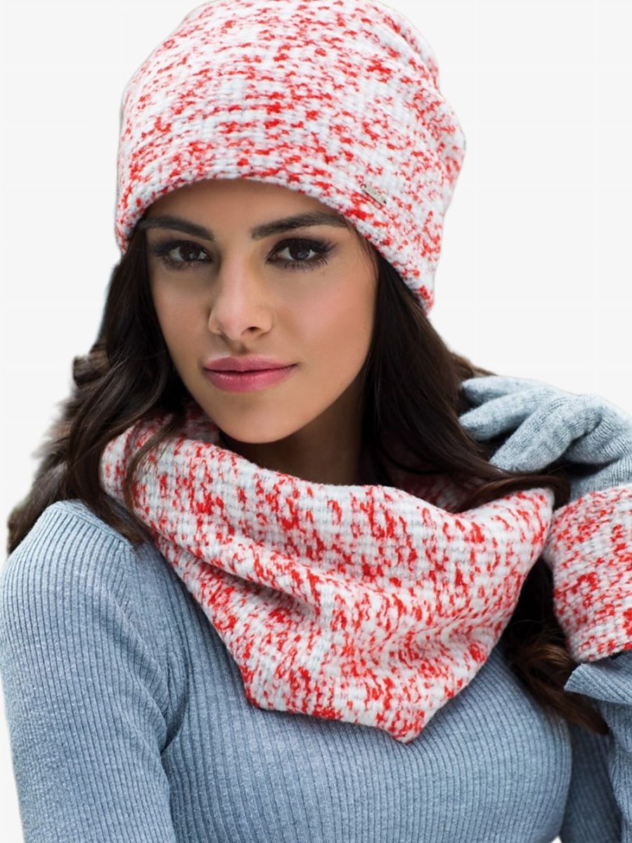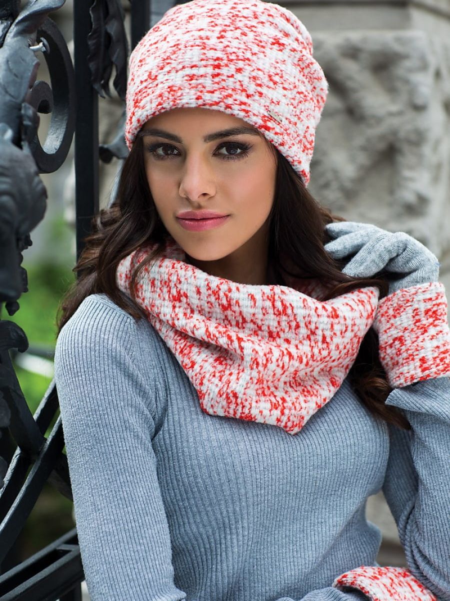 The CORNELIA women's set is the perfect solution for cold days. Consisting of a fashionable orange hat with a cowl, it will delight every woman with its design. Made of high-quality yarn, adorned with an interesting pattern, it not only ensures a stylish look but also comfort and warmth during autumn-winter days. The product is pleasant to the touch and perfectly insulates against the cold. Thanks to the CORNELIA set, you will look fashionable and feel comfortable in any situation.