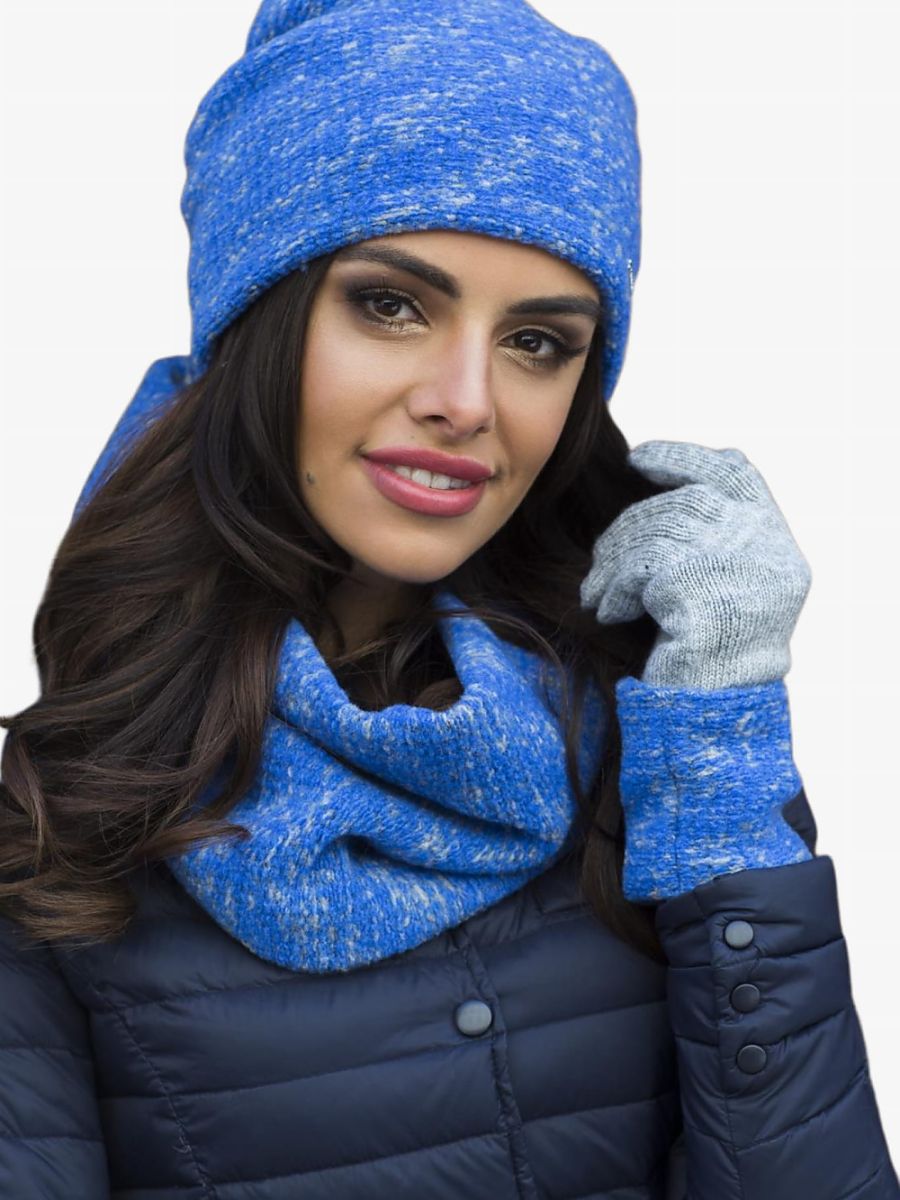 The women's CORNELIA set in blue is the perfect choice for colder days. It consists of a hat and a scarf, which are made of high-quality yarn. Their interesting pattern adds charm to them, and the pleasant touch material ensures comfort and warmth during the autumn-winter season. This elegant set will be a perfect complement to any women's outfit.