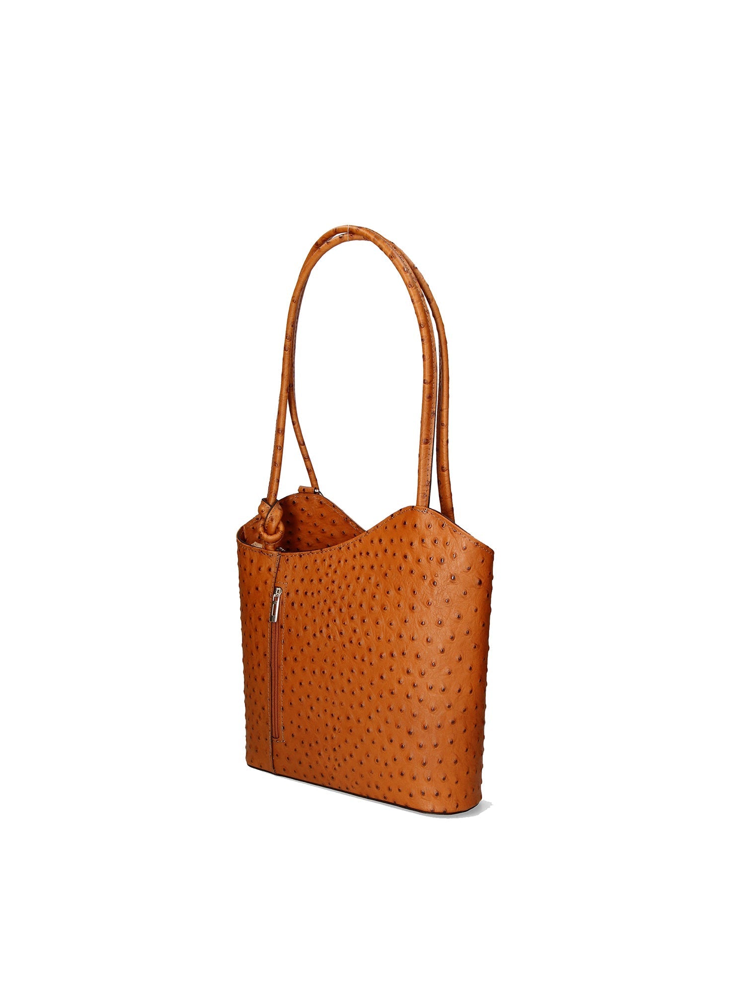 Borsa da donna con in manici e convertibile in zaino in vera pelle stampa struzzo. prodotto artigianale italiano. Made in Italy