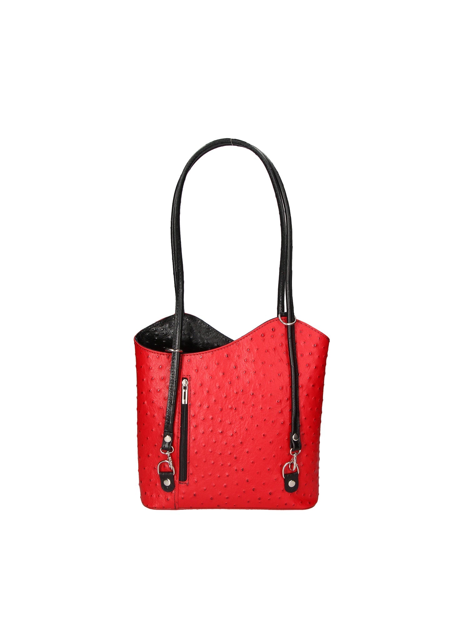 Borsa da donna con in manici e convertibile in zaino in vera pelle stampa struzzo. prodotto artigianale italiano. Made in Italy