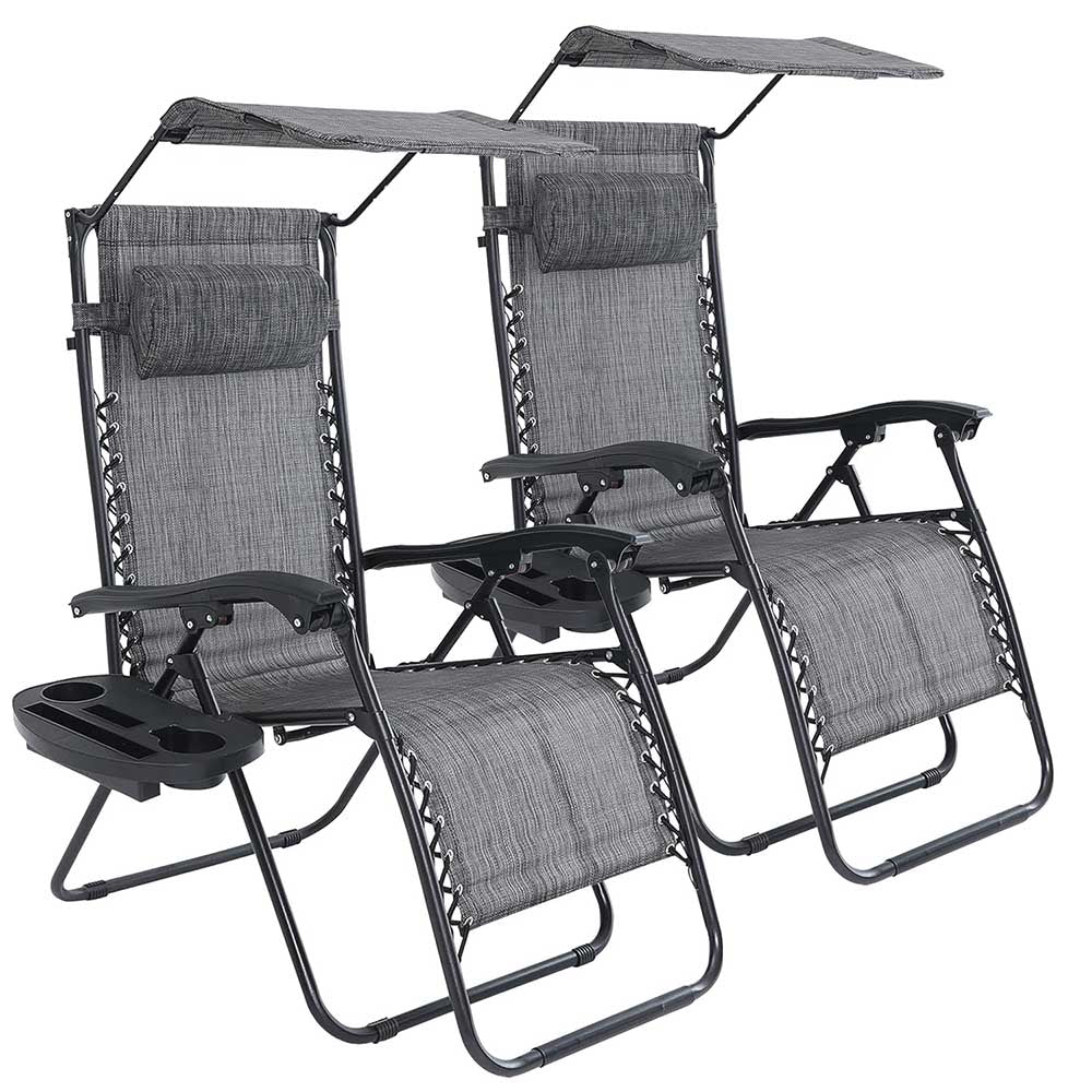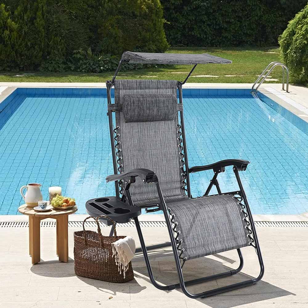 Zéró gravitáció szék napellenzővel és pohártartóval 2 db-os szett, több színben 120 kg-os teherbírással.-Alinda.hu